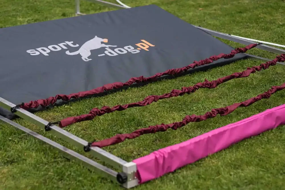 Na placach treningowych skok w dal do mondioringu wykorzystasz zarówno w pracy z psami początkującymi, jak i zaawansowanymi. Zmiana długości skoku oraz elastyczne taśmy umożliwiają stopniowe wydłużanie dystansu, bez ryzyka gwałtownego obciążenia stawów czy kręgosłupa psa. Dobrze zaplanowany trening na tego typu przeszkodzie wzmacnia jego koordynację ruchową, świadomość ciała i buduje odwagę przy pokonywaniu długich skoków.