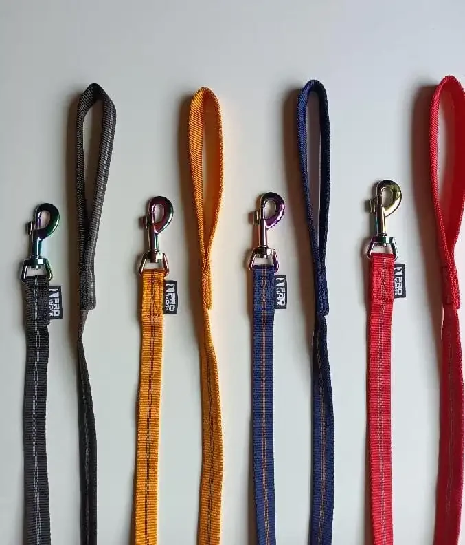 Spiralny splot rurowy łączy dwie warstwy taśmy bez szycia, dlatego świetnie znosi większe obciążenia i lepiej amortyzuje nagłe zmiany kierunku psa. Bawełna pozostaje miękka, giętka i przyjemna w dotyku nawet przy pracy w deszczu lub w błocie. Taśma nie sztywnieje i nie przeciera się przy długotrwałym użytkowaniu. Przesuwa się po ziemi bez ryzyka zaklinowania dłoni, co ma znaczenie w pracy z psami dużymi, energicznymi oraz w sytuacjach, kiedy pies reaguje gwałtownie.
