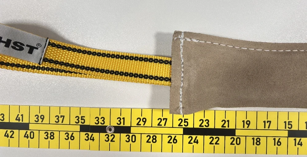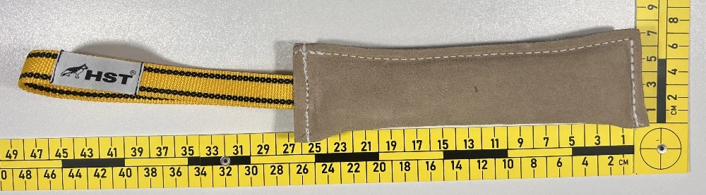 Zszywana warstwowo skóra nadaje mu odpowiednią twardość, dzięki czemu gryzak stymuluje psa i uczy precyzyjnego chwytania. Jest bezpieczny dla zębów, ale wystarczająco odporny, by wytrzymać pracę z silnym psem. Jeden szeroki uchwyt ułatwia kontrolę – zarówno podczas przeciągania, jak i w pracy z komendą „trzymaj”.