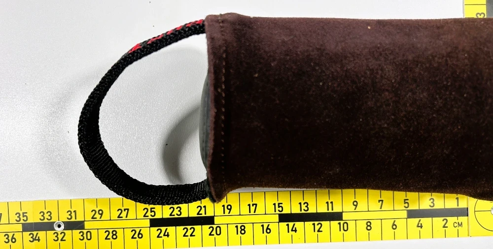 Wałek ma formę cylindryczną, został wykonany w całości z mocnej skóry zamszowej i sprawdza się w treningach użytkowych oraz pracy z przewodnikiem lub pozorantem.