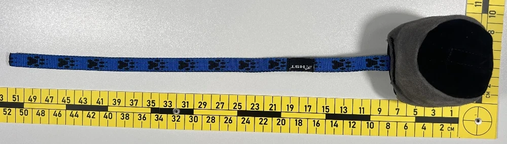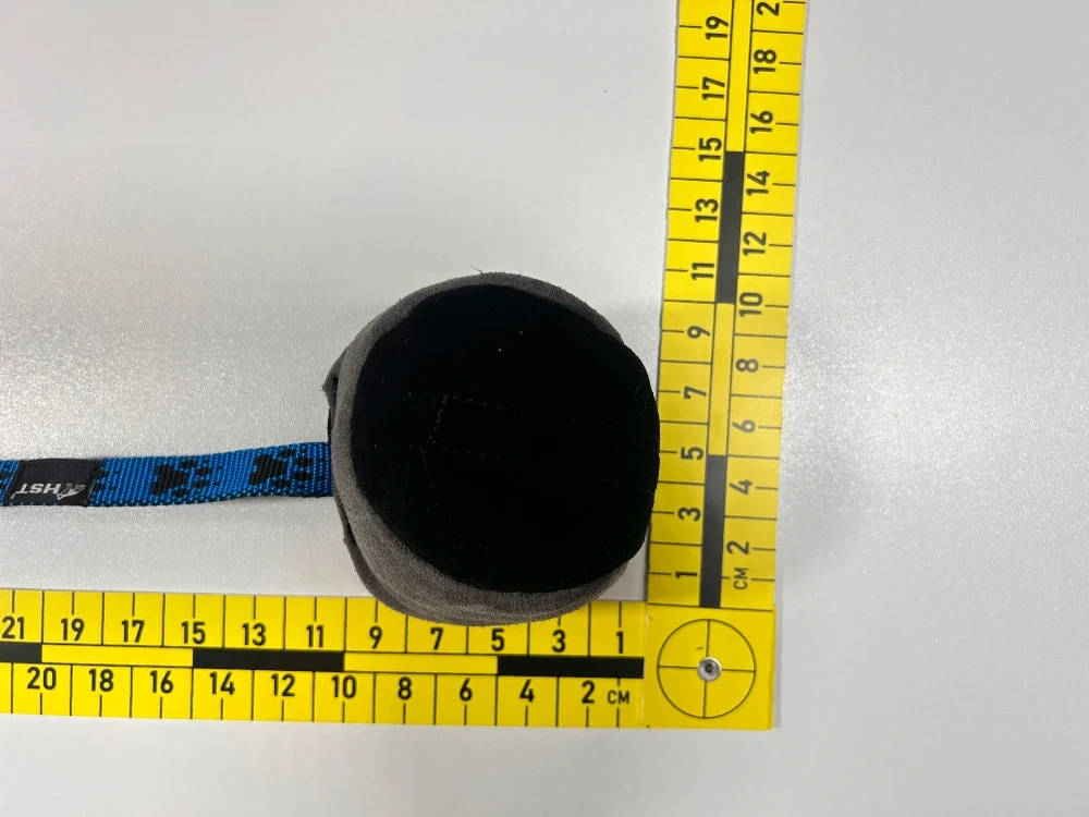 Średnica piłki: 10 cm, długość taśmy: 50 cm – to optymalne proporcje, które pozwalają zmieścić gryzak w saszetce, kamizelce lub kieszeni kurtki. Możesz używać go w każdej sytuacji treningowej – również jako nagrody z zaskoczenia.